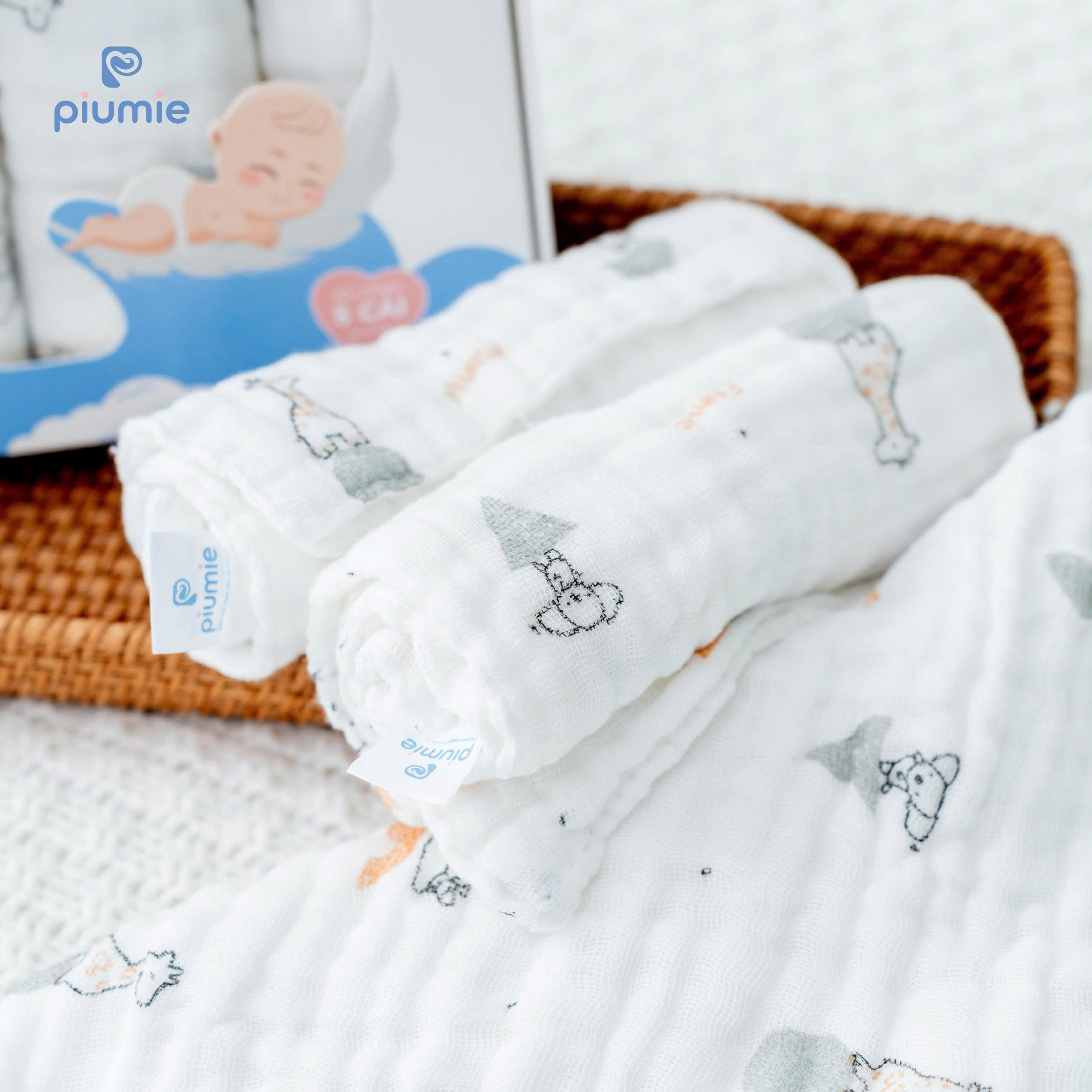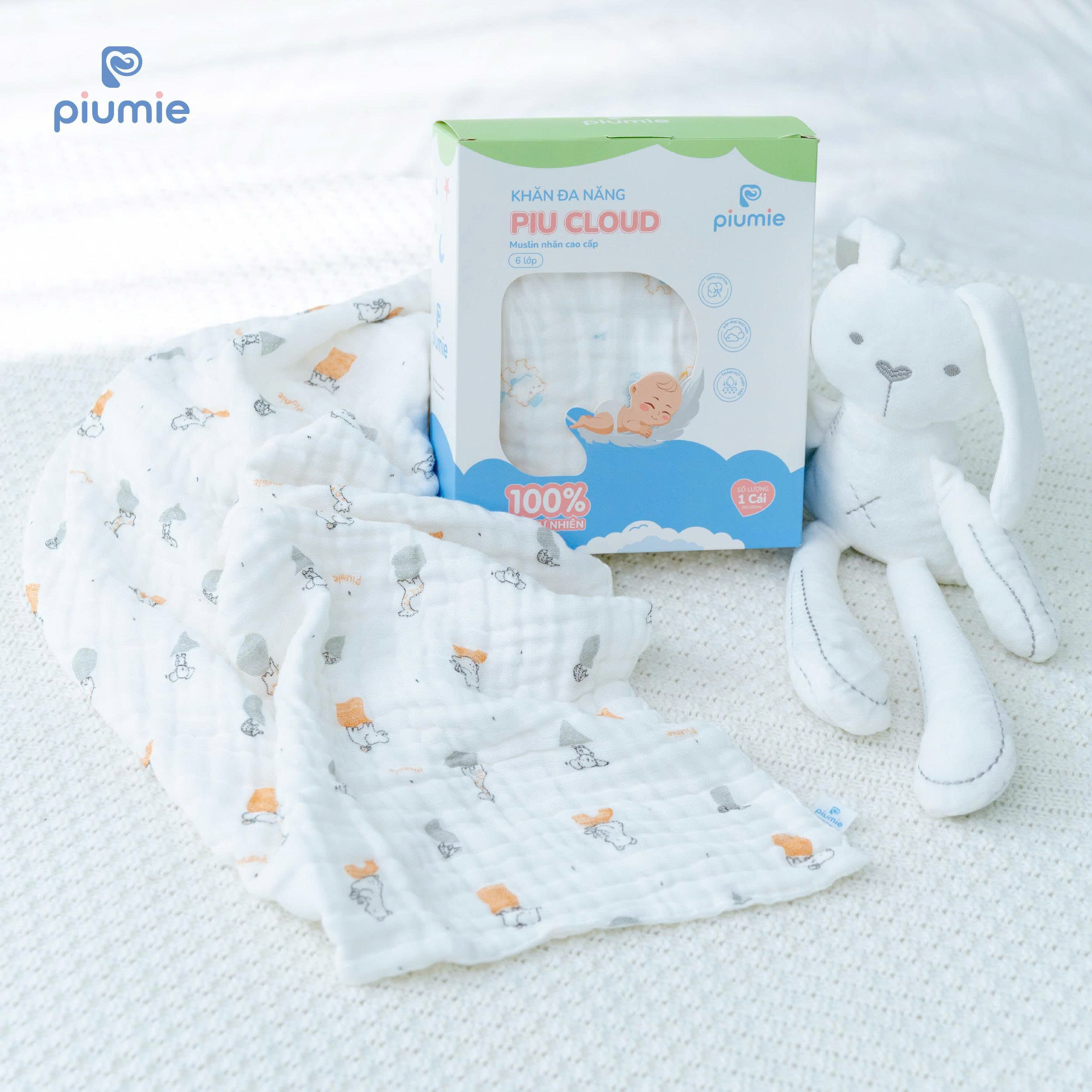 Khăn sữa Piu Cloud muslin nhăn 6 lớp