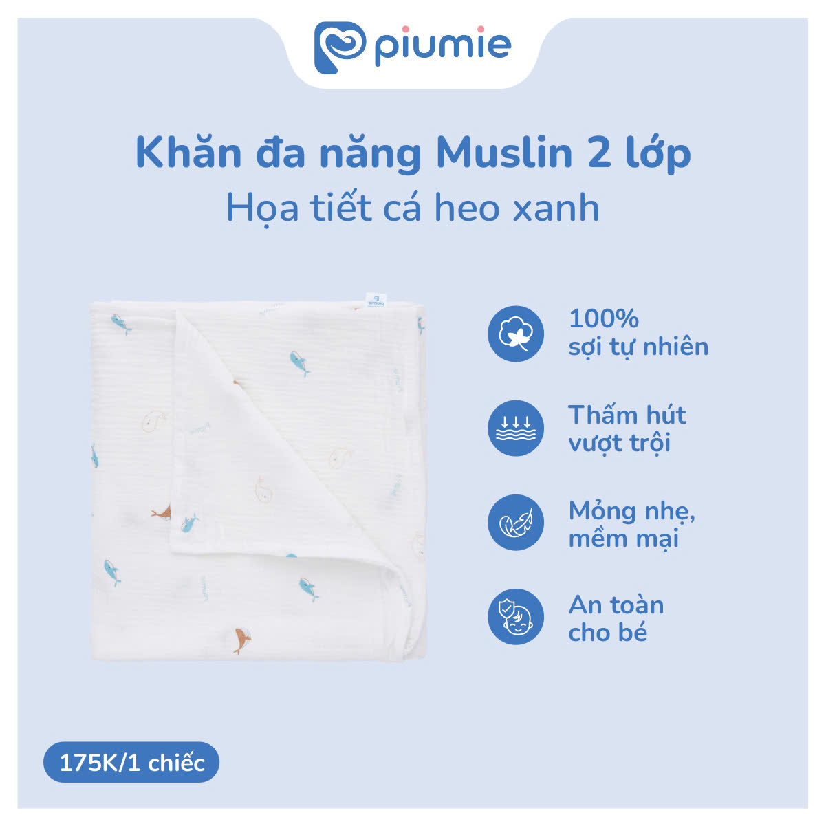 Khăn đa năng Piu Cloud muslin nhăn 6 lớp