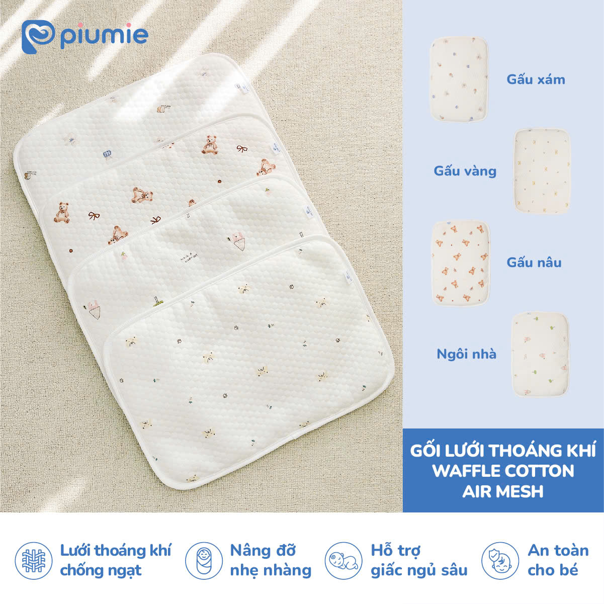 Gối lưới thoáng khí waffle cotton Airmesh