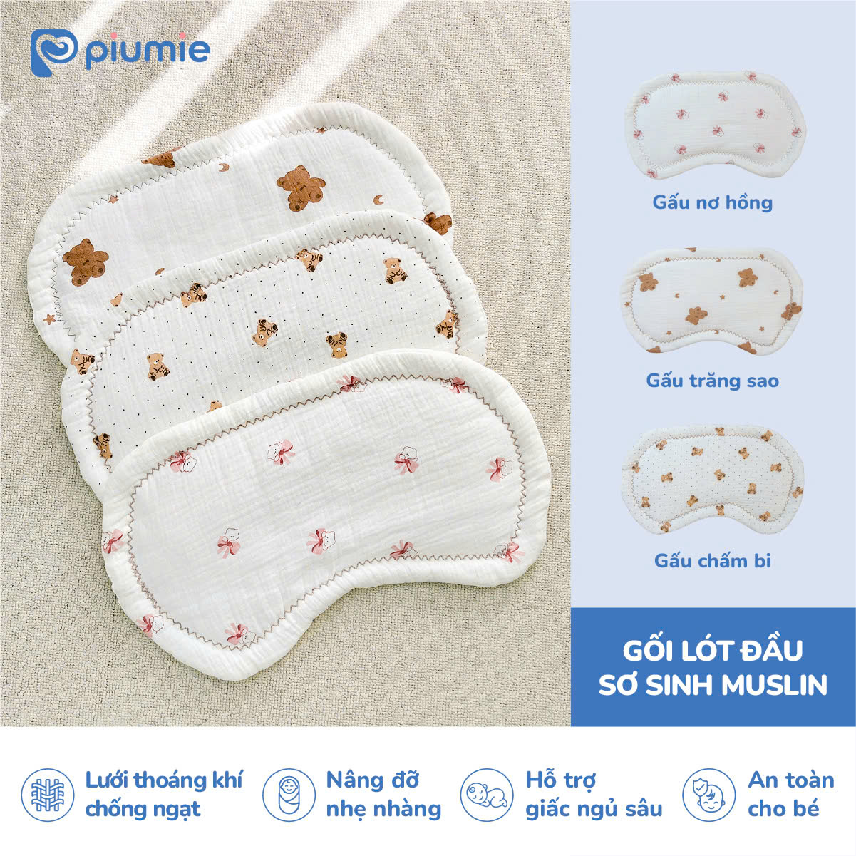 Gối lót đầu sơ sinh muslin