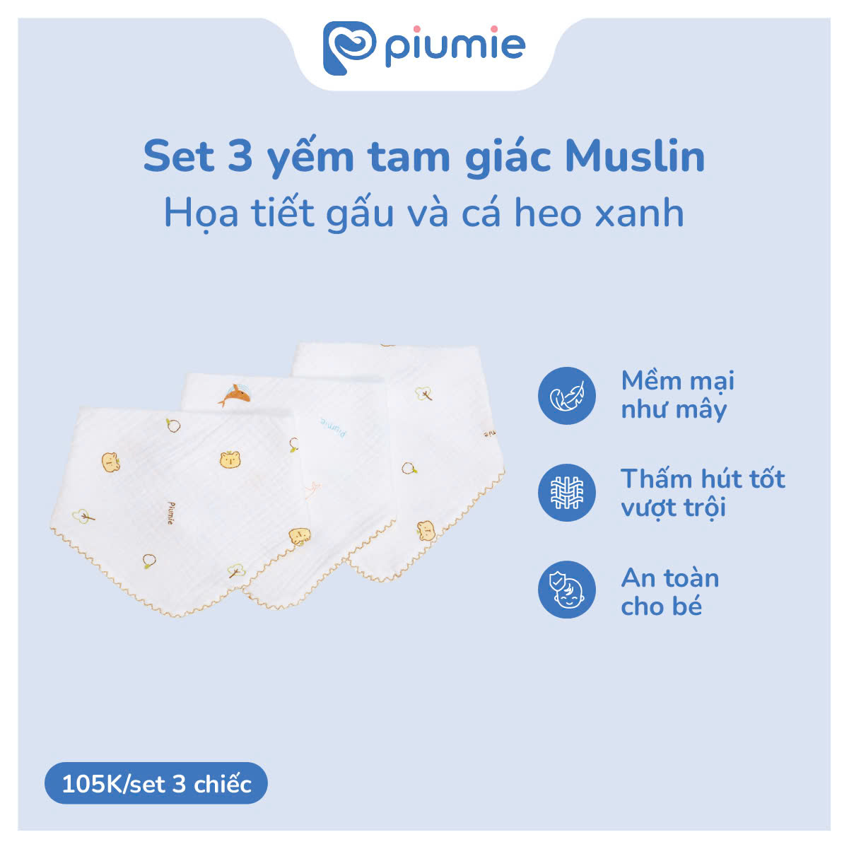 - Chất liệu muslin nhanh khô, an toàn, thoáng khí.