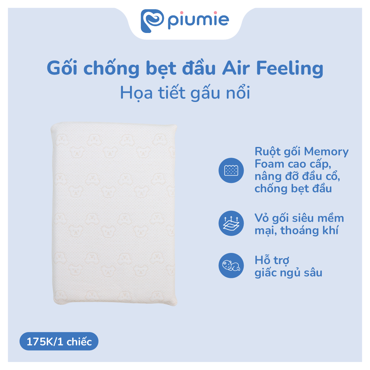 - Gối thoáng khí chống bẹt đầu Air Feeling kích thước 35x25cm