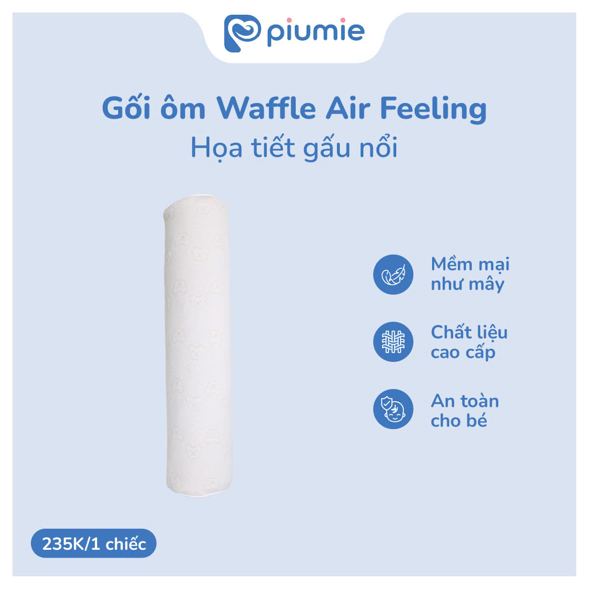 Được tạo nên bởi những lớp vải làm từ sợi bông tự nhiên cùng lớp bông mềm mại như những đám mây trắng muốt, với kết cấu ô dệt thoáng khí của 3 lớp chần bông. Với họa tiết gấu nổi 3D xinh xắn cùng bề mặt mềm rủ, mướt trên da, chắc chắn đây sẽ là người bạn "bedding" chăm sóc giấc ngủ tuyệt vời cho bé.